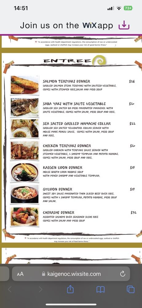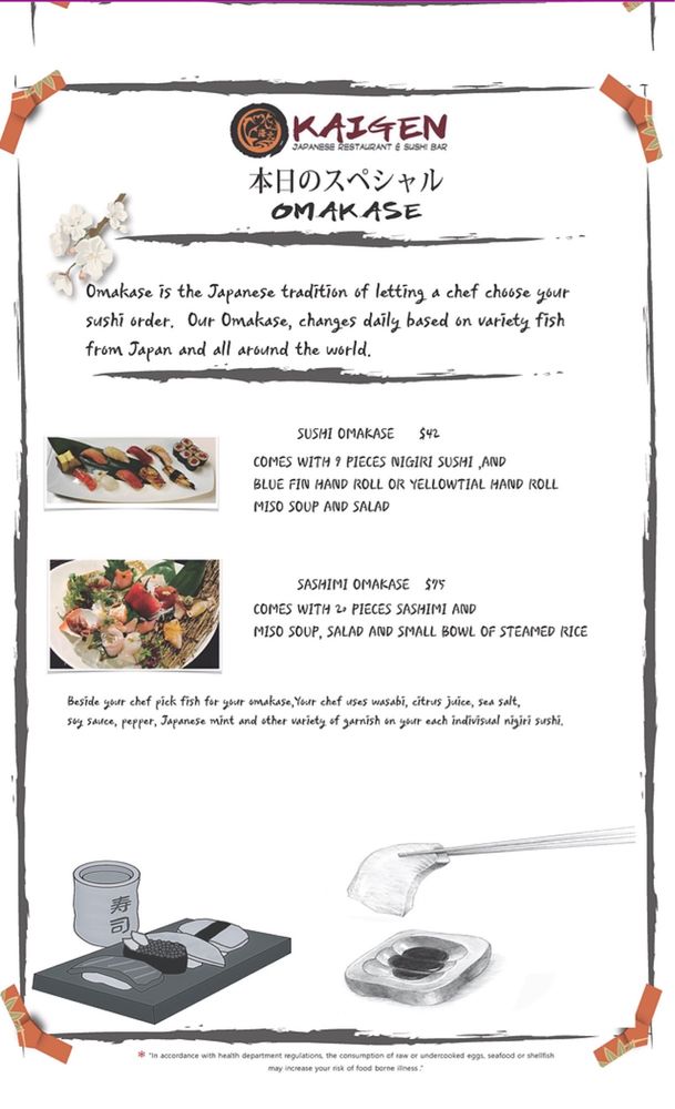 Introducing Kaigen, a hidden gem of Japanese sushi bars located in Orange, CA. Known for its quality fish and impeccable service, Kaigen offers a wide range of dining options, from exquisite omakase selections to traditional sashimi dishes. Customers rave about the melt-in-your-mouth buttery goodness of every bite, highlighting favorites like the Chili Ponzu Yellowtail Sashimi and the Shokado Lunch Sets. The skilled sushi chef Danny and the welcoming staff ensure a memorable dining experience, with a focus on attention to detail and affordability. The cozy ambiance and fresh daily seafood offerings make Kaigen a must-visit for sushi enthusiasts. Don't miss out on pairing your meal with a chilled Orion premium draft beer for the perfect complement to an already amazing dining adventure at Kaigen.